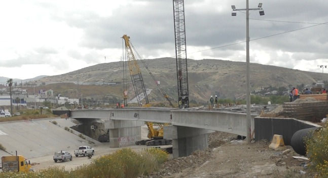 TIJUANA, BC 05 MAYO DE 2023 (CNR).- Posterior a la temporada de lluvias que se presentó en la zona costa del estado de Baja California, se retomaron las obras de construcción del puente vehicular de los olivos, al momento se han instalado 15 de las 18 trabes de concreto y acero que formarán parte de la plancha de rodamiento de dicho puente, el avance de las obras es del 50%, se prevé que el puente esté finalizado en su totalidad para mediados del año 2023.